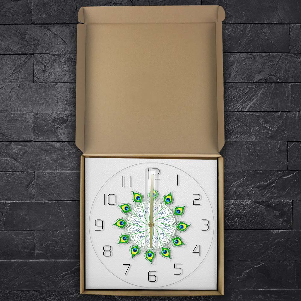 Dekoracyjny zegar ścienny pawie pióra – Dodaj blasku swojemu wnętrzu!