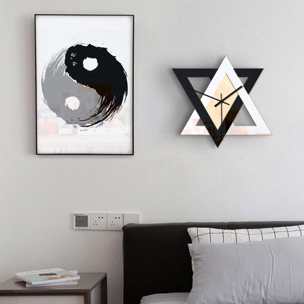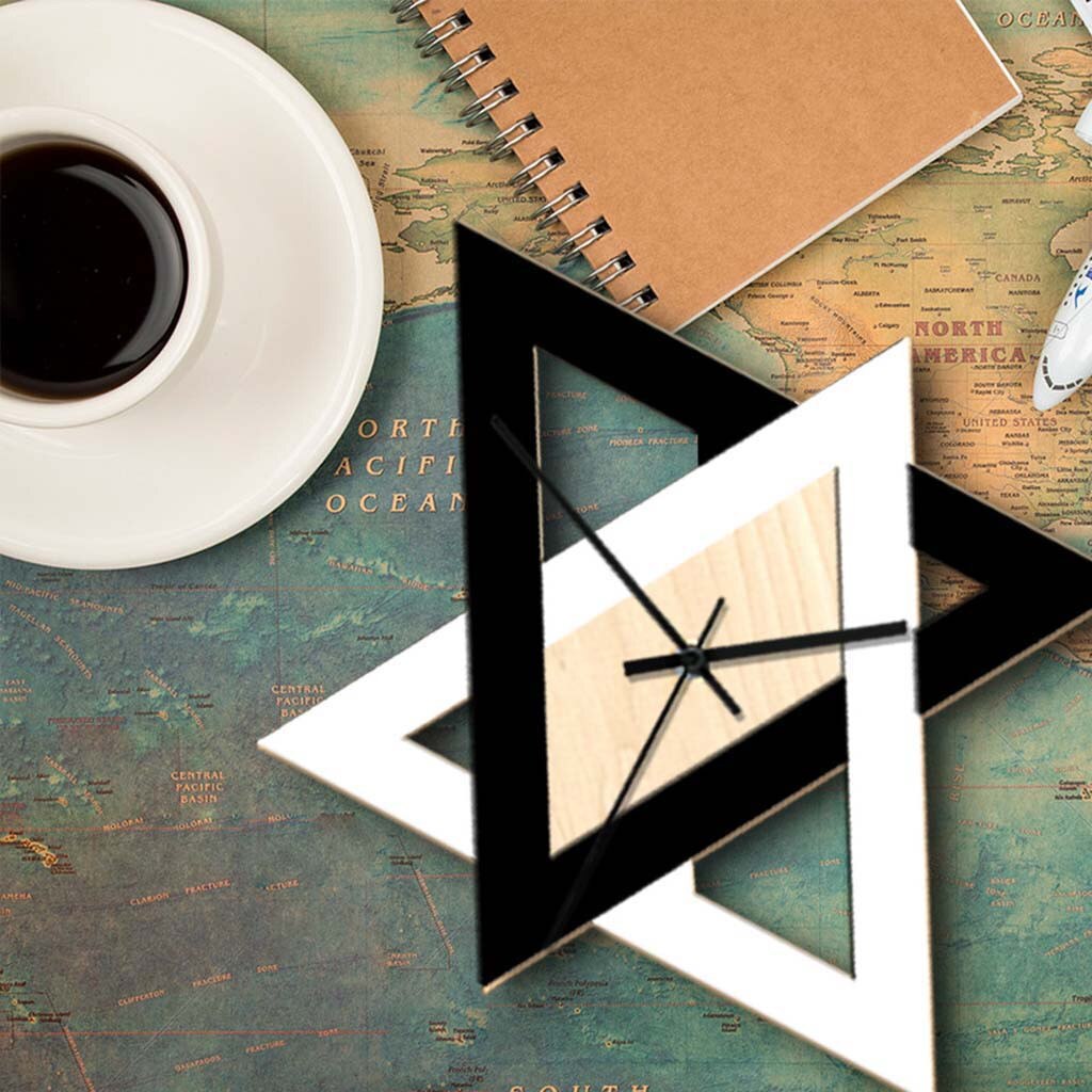 Czy Twoje wnętrze zasługuje na coś więcej niż zwykły zegar? Poznaj nasz wyjątkowy designerski zegar ścienny drewno i metal, który jest prawdziwą fuzją sztuki i funkcjonalności. Zaprojektowany z myślą o miłośnikach nowoczesnego designu, ten zegar to nie tylko precyzyjne narzędzie do mierzenia czasu, ale przede wszystkim spektakularny element dekoracyjny. Jego intrygująca, geometryczna forma, będąca połączeniem trzech trójkątów w kontraście czerni, bieli i naturalnego drewna, natychmiast przyciągnie wzrok i stanie się centralnym punktem każdego pomieszczenia. Wyobraź sobie, jak ten unikalny akcent ożywia Twoją ścianę, dodając jej głębi i wyrafinowanego charakteru.
