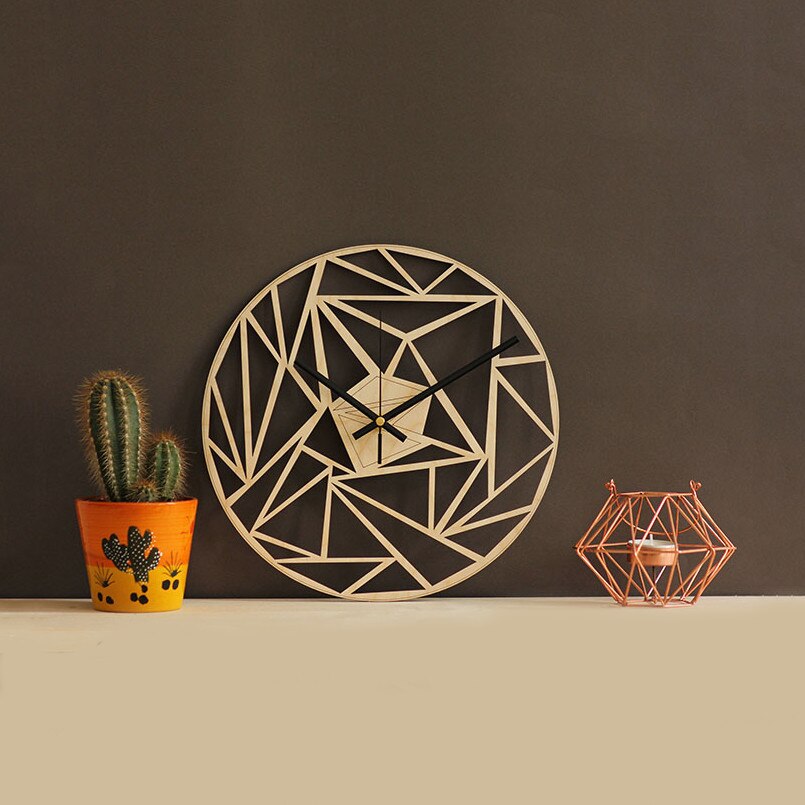 Dodaj charakteru swojemu wnętrzu z naszym Drewnianym ażurowym zegarem ściennym geometrycznym!