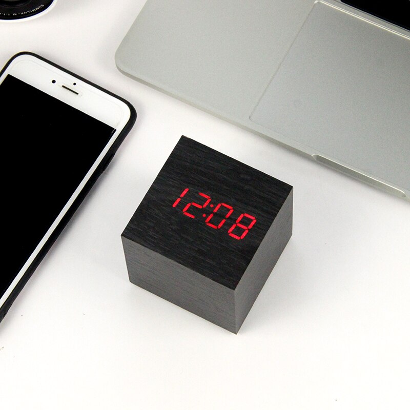 Drewniany Budzik Cyfrowy w Kształcie Kostki: Design, Który Cieszy Oko