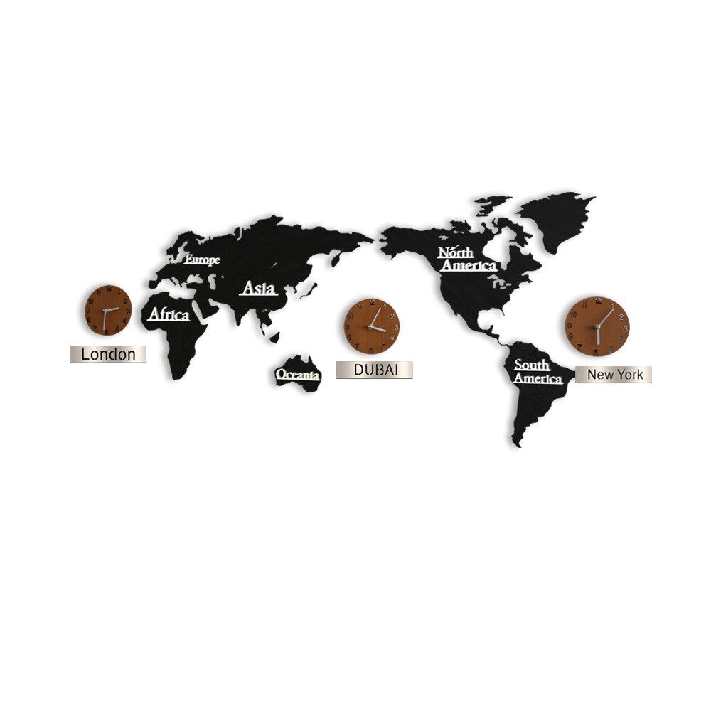 - Elegancja i Styl: Połączenie głębokiej czerni mapy z naturalnym odcieniem drewnianych tarcz zegarów tworzy wyrafinowany i uniwersalny design, pasujący do wielu wnętrz.