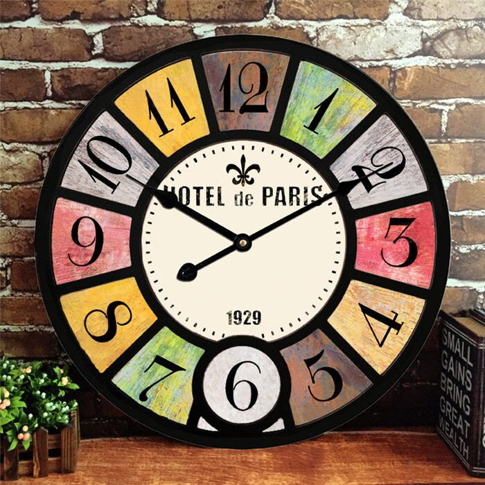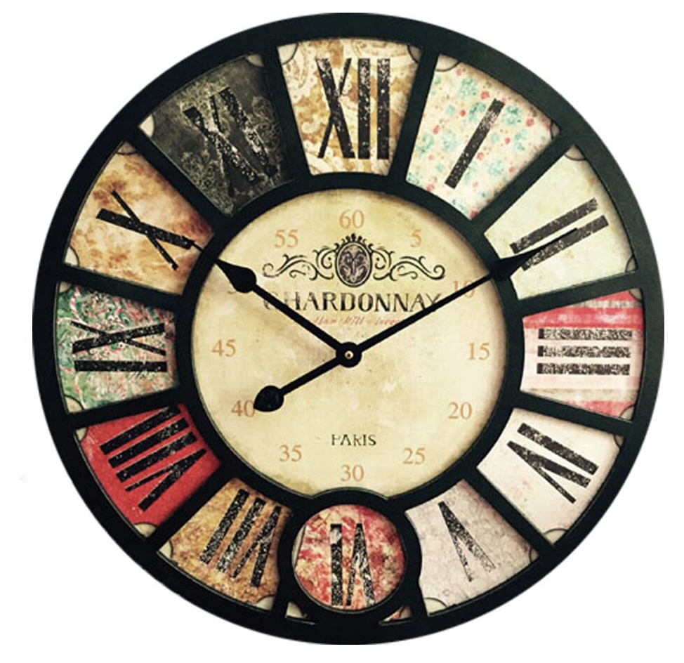 Ten wyjątkowy Duży zegar ścienny retro loft 60cm został zaprojektowany z myślą o miłośnikach vintage i industrialnego designu. Jego solidna, czarna rama otacza tarczę z rzymskimi cyframi, z których każda osadzona jest na unikatowym, postarzanym tle, tworząc efekt patchworku pełnego historii. Centralna część tarczy, z subtelnymi napisami "CHARDONNAY" i "PARIS", przenosi nas myślami do urokliwych francuskich kawiarenek, dodając zegarowi autentycznego, europejskiego charakteru. Precyzyjne wskazówki zapewniają dokładne odmierzanie czasu, a duża średnica 60 cm sprawia, że jest doskonale czytelny nawet z daleka. To połączenie klasyki z nowoczesnym twistem, które sprawdzi się w salonie, sypialni, biurze czy kuchni, stając się nie tylko praktycznym, ale i estetycznym dodatkiem.