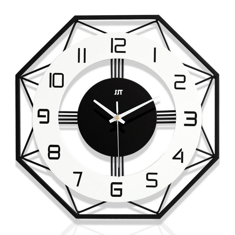 Ten nowoczesny geometryczny zegar ścienny metalowy został stworzony, aby podnieść estetykę Twojego otoczenia. Jego solidna metalowa konstrukcja gwarantuje trwałość i stabilność, a jednocześnie zachwyca lekkością formy. Ośmiokątna ramka z abstrakcyjnymi wzorami tworzy intrygujący efekt wizualny, który dodaje dynamiki i nowoczesnego charakteru. Biała tarcza z czytelnymi, minimalistycznymi cyframi zapewnia łatwość odczytu godziny, a kontrastujące, czarne centrum z subtelnym logo JJT podkreśla jego designerski sznyt. Niezależnie od tego, czy szukasz elementu, który ożywi Twój salon, doda profesjonalizmu biuru, czy stworzy relaksującą atmosferę w sypialni, ten zegar spełni Twoje oczekiwania, będąc zarówno funkcjonalnym, jak i niezwykle stylowym dodatkiem.