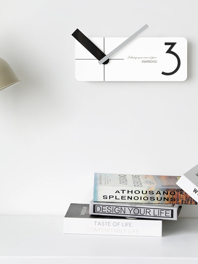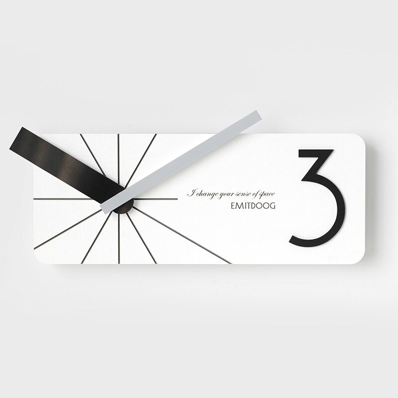 Co wyróżnia nasz zegar spośród innych? Przede wszystkim jego niekonwencjonalny, wydłużony kształt oraz odważne połączenie bieli z czernią i akcentem delikatnej zieleni. Zamiast tradycyjnych cyfr, zastosowaliśmy minimalistyczne linie radialne, które w połączeniu z wyróżniającą się trójką, nadają zegarowi artystyczny charakter. Gruby, czarny wskaźnik godzinowy i smukła, turkusowa wskazówka minutowa poruszają się cicho i płynnie, zapewniając spokój w każdym pomieszczeniu. To nie tylko zegar, to dzieło sztuki użytkowej, które odzwierciedla filozofię „I change your sense of pace” – zmieniając Twoje postrzeganie czasu i przestrzeni. Niezależnie od tego, czy Twoje wnętrze jest skandynawskie, loftowe czy industrialne, ten zegar doskonale się w nie wkomponuje, dodając mu szczyptę awangardy.