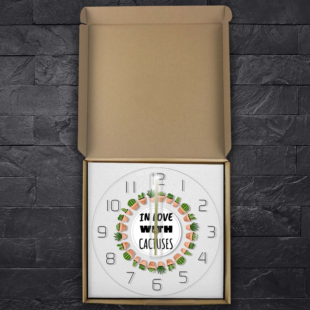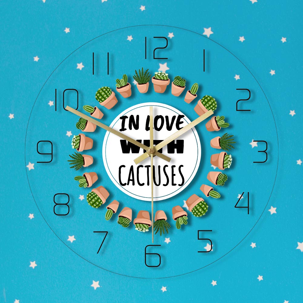 Okrągły Zegar Ścienny w Kaktusy – Dodaj Zieleni Twojemu Wnętrzu!