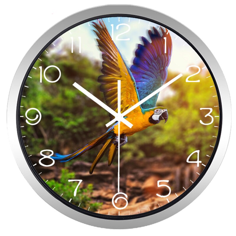 Odkryj elegancję i funkcjonalność naszego Okrągły zegar ścienny z papugą. Zaprojektowany, aby upiększyć Twój dom i stylowo odmierzać czas, łączy wyrafinowany design z codzienną praktycznością.