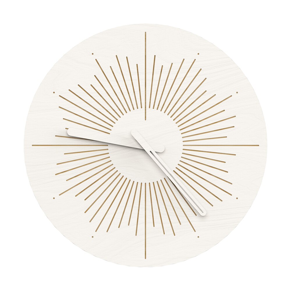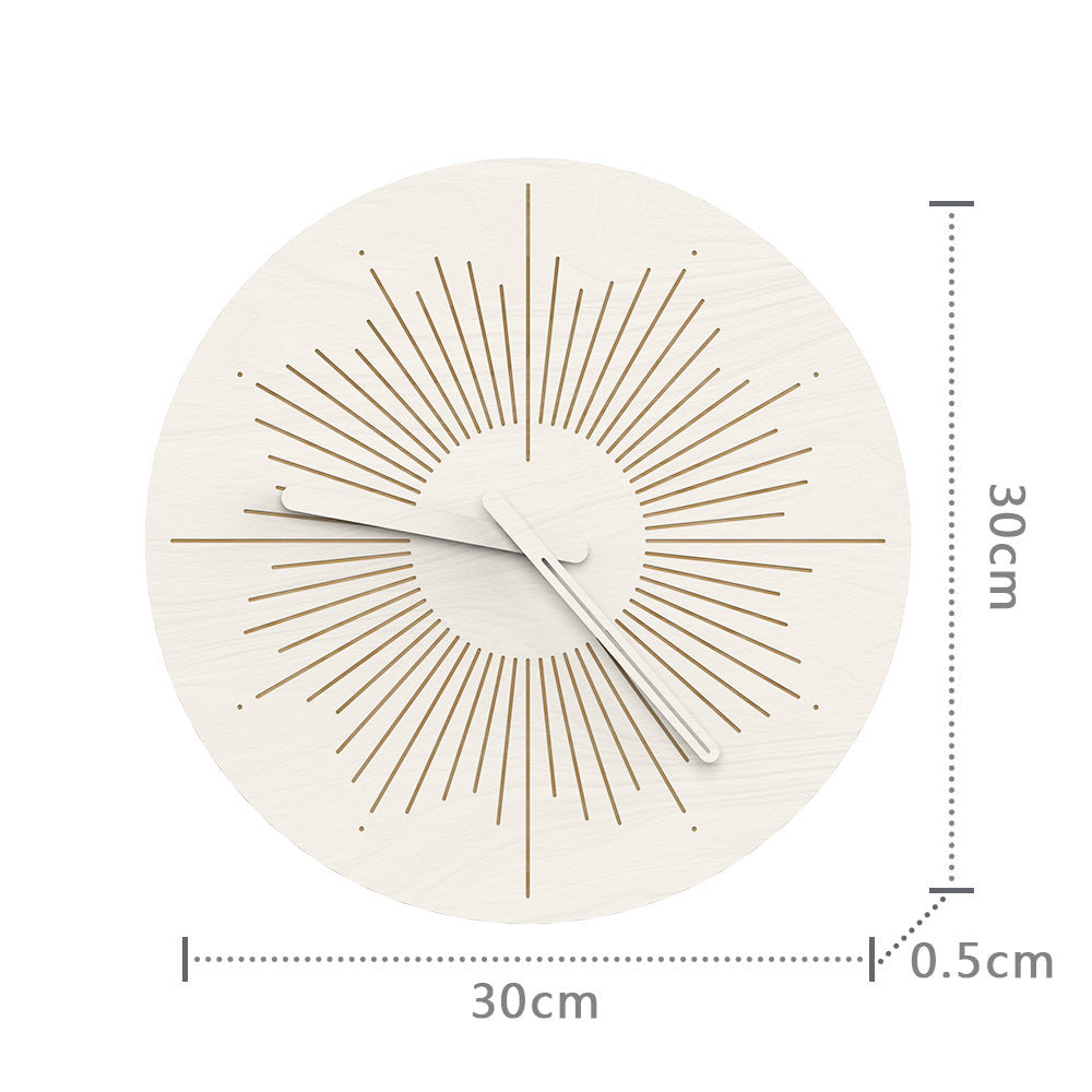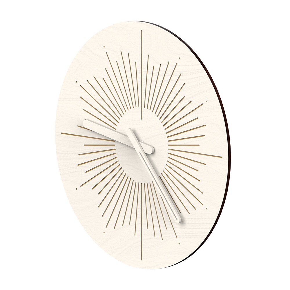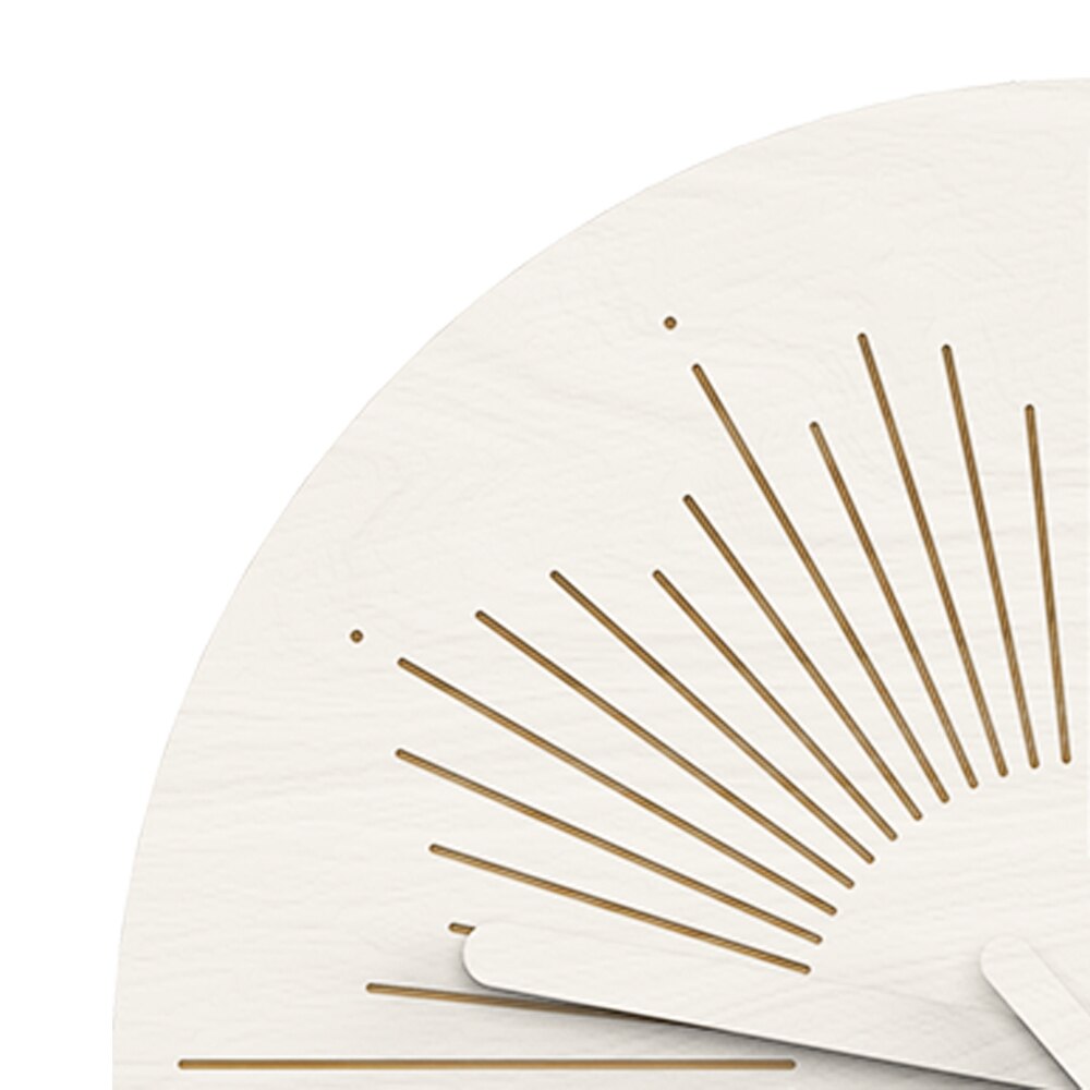 Stworzony z dbałością o każdy detal, ten Ozdobny zegar ścienny w kształcie słońca zachwyca swoją prostotą i elegancją. Jasna tarcza, wykonana z wysokiej jakości materiału imitującego naturalne drewno w odcieniu bieli, stanowi idealne tło dla precyzyjnie wyciętych, złotych promieni, które rozchodzą się od centralnego punktu. Kontrastujące białe wskazówki idealnie komponują się z całością, jednocześnie zapewniając łatwe i czytelne wskazanie godziny. Wyposażony w cichy mechanizm, gwarantuje spokój i komfort, bez uciążliwego tykania, co czyni go idealnym wyborem do sypialni lub miejsc, gdzie cenisz sobie ciszę. To połączenie funkcjonalności z wyrafinowanym wzornictwem, które sprawdzi się w każdym nowoczesnym domu.
