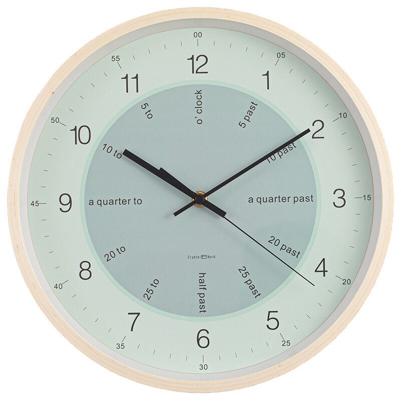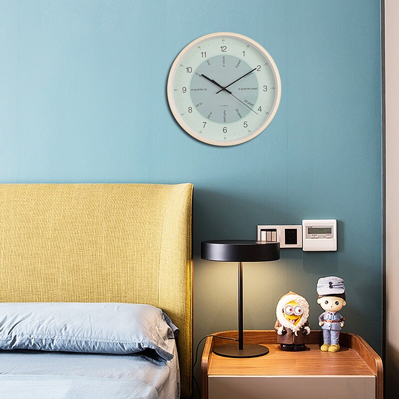 - Pastelowy cyferblat w delikatnym odcieniu pudrowego błękitu, idealny do nowoczesnych wnętrz.