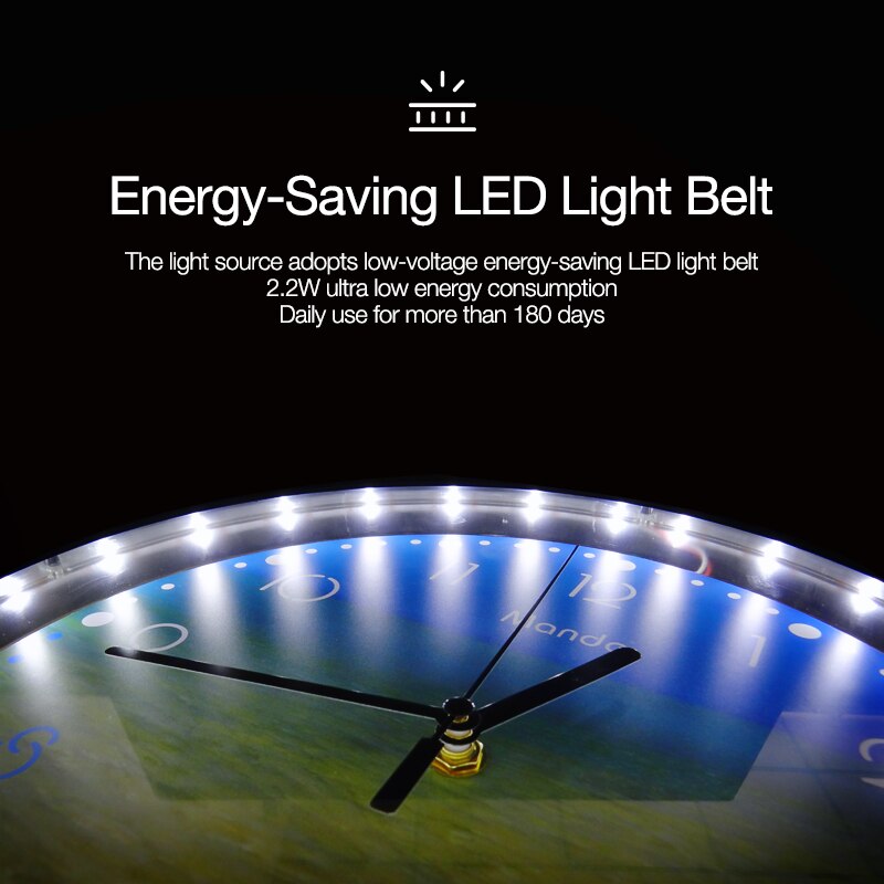 - Automatyczne Podświetlenie LED: Inteligentne czujniki aktywują delikatne światło, gdy robi się ciemno, sprawiając, że nasz Podświetlany zegar ścienny LED świecący w ciemności jest zawsze widoczny.