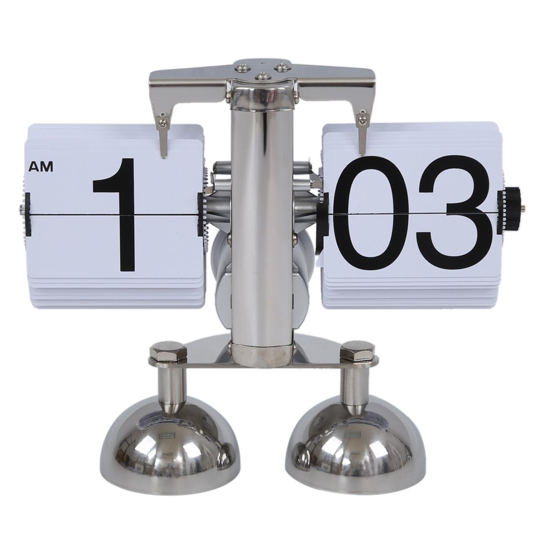 Wybierając ten stalowy zegar klapkowy na biurko vintage, inwestujesz w produkt, który zachwyca nie tylko wyglądem, ale i solidnością wykonania. Wykonany z wysokiej jakości stali, polerowanej na wysoki połysk, gwarantuje trwałość na lata i odporność na upływ czasu – dosłownie i w przenośni. Jego imponujący design, inspirowany estetyką retro, doskonale komponuje się zarówno z nowoczesnymi, jak i klasycznymi aranżacjami wnętrz, dodając im szczyptę luksusu i oryginalności. Duże, wyraźne cyfry na białych kartach zapewniają doskonałą czytelność z każdej perspektywy, a subtelny wskaźnik AM/PM ułatwia orientację w porze dnia.