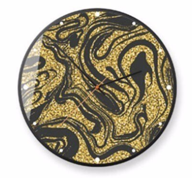 Czy szukasz elementu dekoracyjnego, który odmieni Twoje wnętrze i nada mu niepowtarzalnego charakteru? Nasz elegancki zegar ścienny to znacznie więcej niż tylko urządzenie do mierzenia czasu – to prawdziwe dzieło sztuki! Dzięki fascynującemu wzorowi przypominającemu marmurkowe fale, gdzie intensywna czerń spotyka się z hipnotyzującym, złotym brokatem, ten zegar ścienny stanie się centralnym punktem każdego pomieszczenia. Wyobraź sobie, jak światło delikatnie odbija się od tysięcy drobinek brokatu, tworząc dynamiczny spektakl blasku i luksusu na Twojej ścianie. To idealny wybór dla tych, którzy cenią sobie nowoczesny design, odrobinę ekstrawagancji i chcą podkreślić swój indywidualny styl.