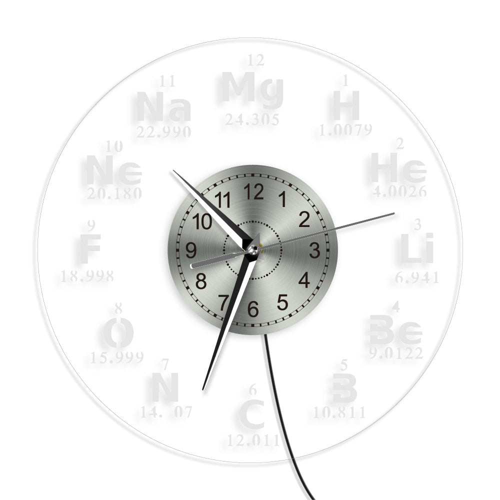 Każda godzina na tym niezwykłym zegarze jest oznaczona symbolem i liczbą atomową pierwiastka chemicznego, od wodoru (H) po magnez (Mg), co czyni go subtelnym narzędziem edukacyjnym. Nie tylko spoglądasz na godzinę, ale także przypominasz sobie podstawy chemii! Wykonany z wysokiej jakości, przezroczystego akrylu, **zegar ścienny LED tablica pierwiastków chemicznych** jest wytrzymały i łatwy w utrzymaniu. Zintegrowane podświetlenie LED emituje ciepłą, czerwoną poświatę, która jest nie tylko energooszczędna, ale także tworzy niepowtarzalny nastrój, szczególnie wieczorami. Precyzyjny mechanizm kwarcowy zapewnia dokładne odmierzanie czasu, dzięki czemu nigdy się nie spóźnisz, a jego cicha praca nie zakłóci Twojego spokoju.