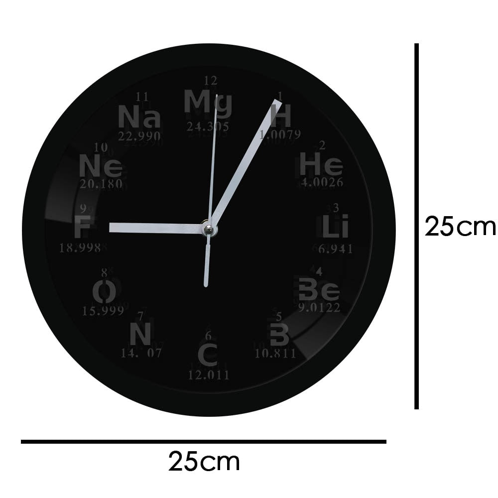 - Innowacyjny Design: Zamiast tradycyjnych cyfr, znajdziesz 12 kluczowych pierwiastków chemicznych z ich danymi, co czyni ten zegar prawdziwie wyjątkowym elementem dekoracyjnym.