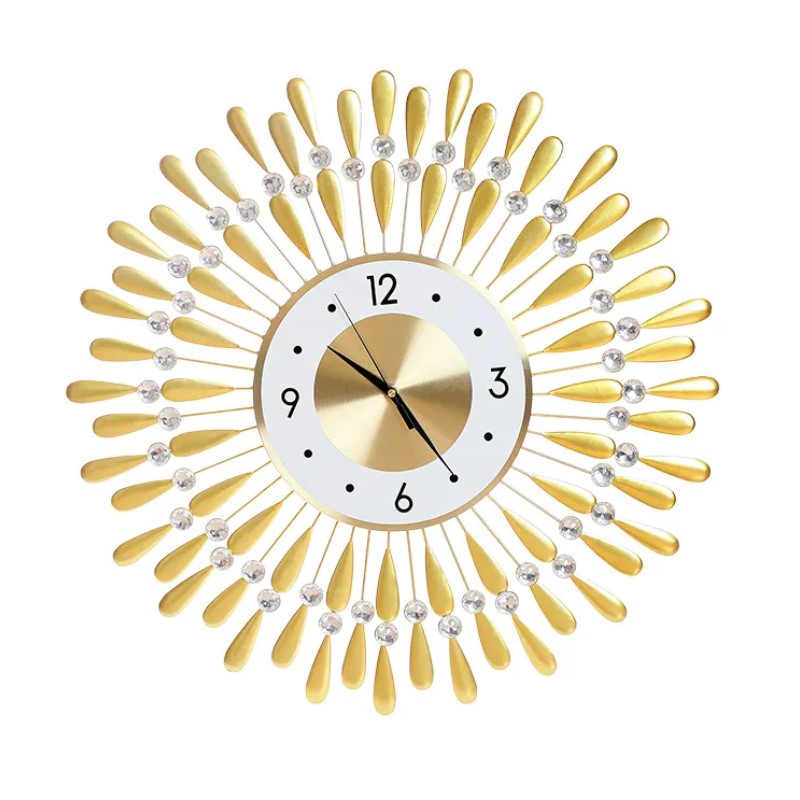 Każdy element tego zegara ściennego w kształcie słońca został starannie przemyślany, aby stworzyć harmonijną i porywającą kompozycję. Delikatnie zakrzywione, złote promienie słońca wydają się tańczyć wokół centralnej tarczy zegara, tworząc wrażenie dynamiki i lekkości. Złoty kolor dodaje mu królewskiego blasku, a jednocześnie pasuje do wielu stylów wnętrzarskich – od klasycznego po nowoczesny, od boho po glamour. Tarcza zegara, z wyraźnymi cyframi i minimalistycznymi wskazówkami, zapewnia doskonałą czytelność, jednocześnie nie odciągając uwagi od spektakularnej oprawy. To nie jest zwykły zegar, to dekoracja, która mówi sama za siebie, wzbudzając podziw i inspirując, gdziekolwiek się znajdzie.