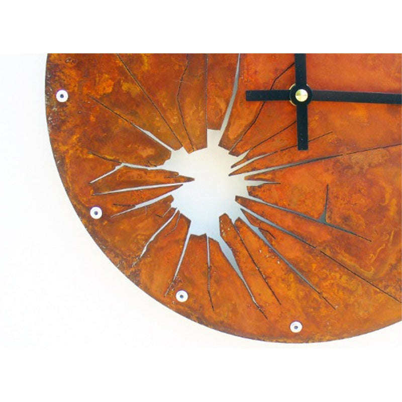 Szukasz elementu, który odmieni Twoje wnętrze i nada mu niepowtarzalnego charakteru? Przedstawiamy zegar ścienny, który jest prawdziwym dziełem sztuki. Ten unikalny zegar ścienny z efektem pękniętego szkła to znacznie więcej niż tylko sposób na mierzenie czasu. Jego rdzawy, industrialny wygląd w połączeniu z intrygującym, rozchodzącym się od centrum efektem pęknięcia tworzy oszałamiający punkt centralny, który natychmiast przyciągnie wzrok. Idealnie pasuje do loftowych przestrzeni, nowoczesnych aranżacji czy biur, gdzie ceniona jest oryginalność i artystyczny wyraz.