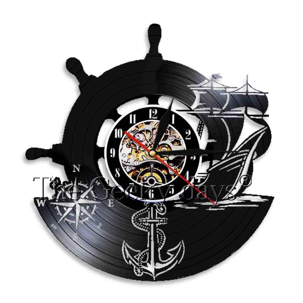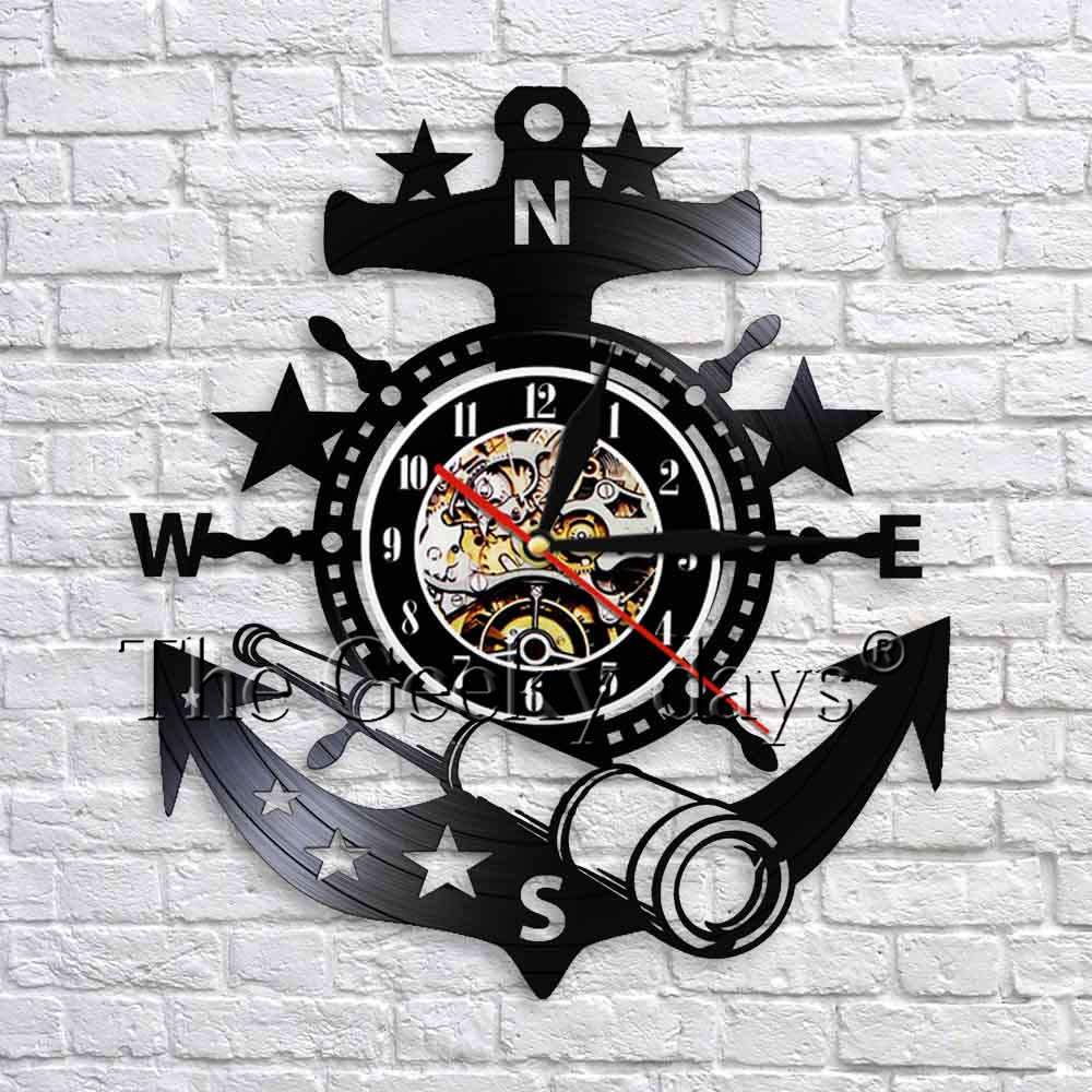 Wyjątkowy design: Zegar winylowy z motywem morskim kotwica jako dzieło sztuki